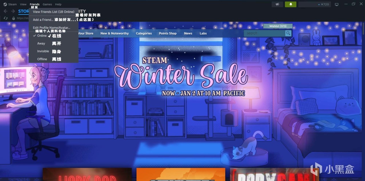 而商店访问不了的话,可以尝试不断库(Library),然后点击商店(Store),等待加载。如果失败就不停地在库和商店之间刷新。这是最简单的方法。