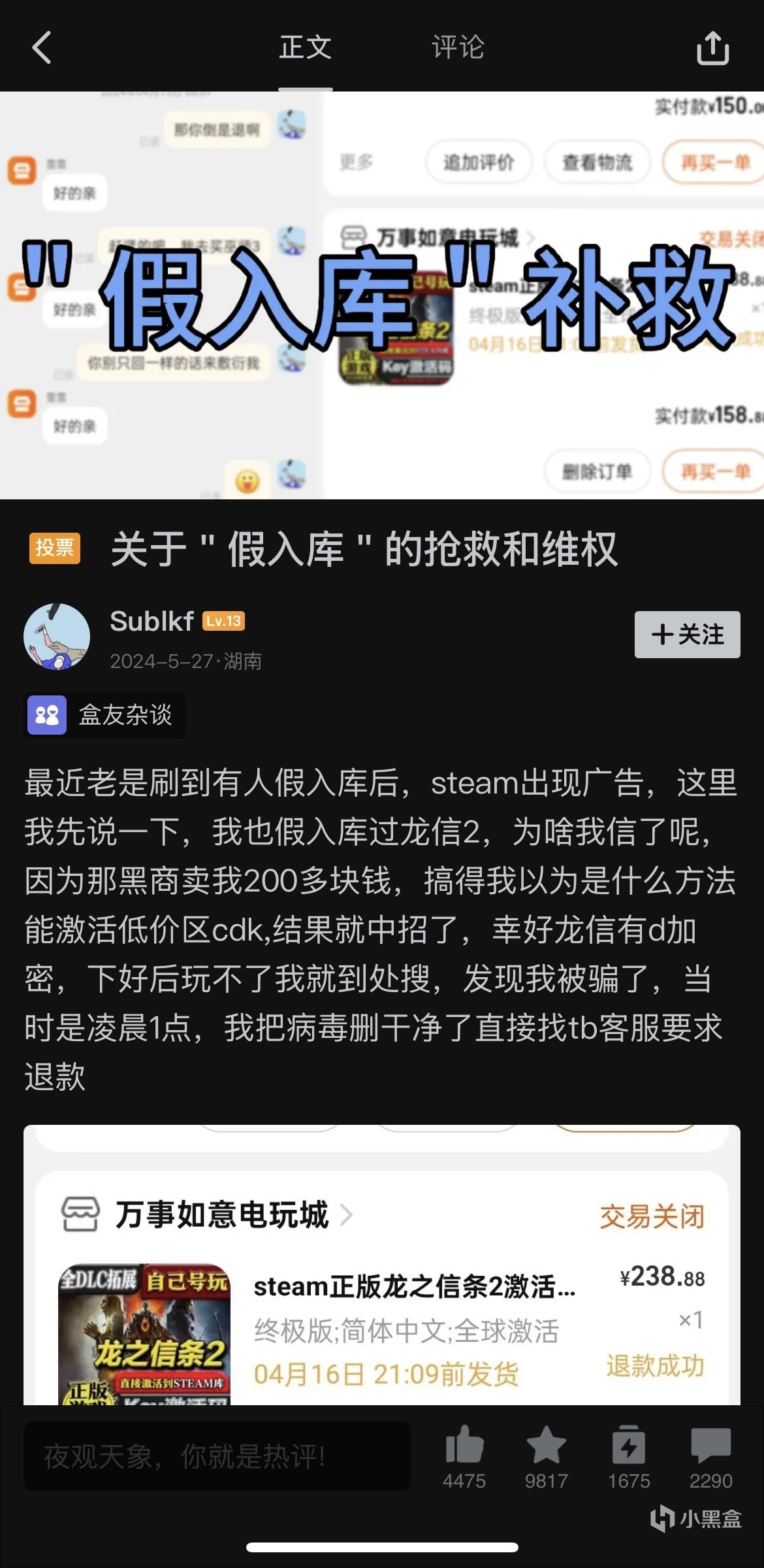 所以最重要的是不要贪便宜啊!每天都能在小黑盒刷到这种帖子,还有人执迷不悟相信店家说的就是真理,他的激活码就是真的。那真的执迷不悟的话就只能活该被骗。