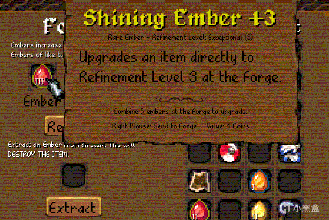 如下图:每次使用余烬强化装备,都会使余烬的精炼等级-1