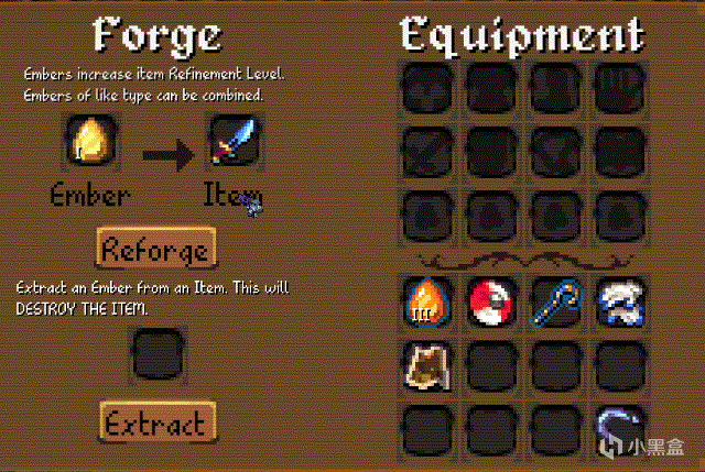 熔炉:强化装备/余烬(强化石),或是将余烬从装备中提取