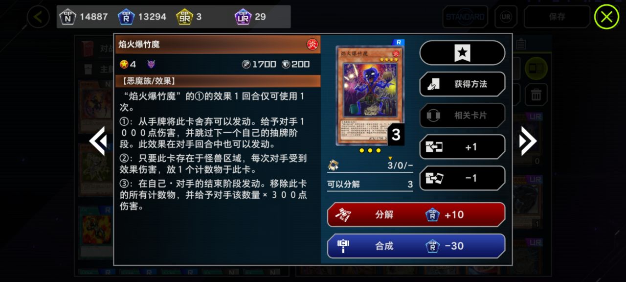 “恶鬼”获得条件为达成五次在先攻的一回合内取得胜利即可获得。总所周知,普通的决斗是不能达成任务完成次数的,而其他ftk卡组要么造价高,要么无法在一回合内取得胜利,而这次活动可以让我们轻松获得该称号。以下为卡组构成,造价极为便宜,额外卡组筹够15张即可。