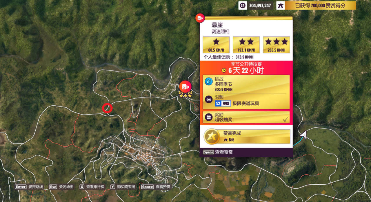 测速照相:悬崖,完成奖励为超级抽奖。(拉远点,建议从圆圈处出发,过弯建议松油门就行,能不刹车就不刹车)