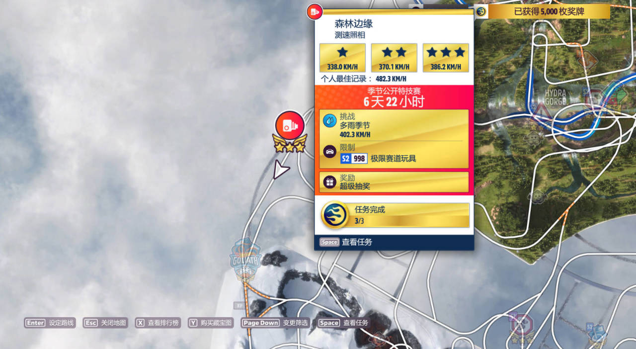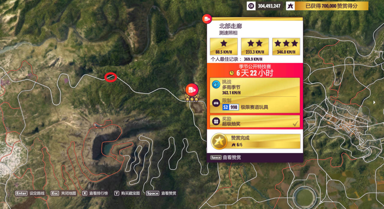 测速照相:北部走廊,完成奖励为超级抽奖。(拉远点,建议从圆圈处出发,过弯建议松油门就行,能不刹车就不刹车)
