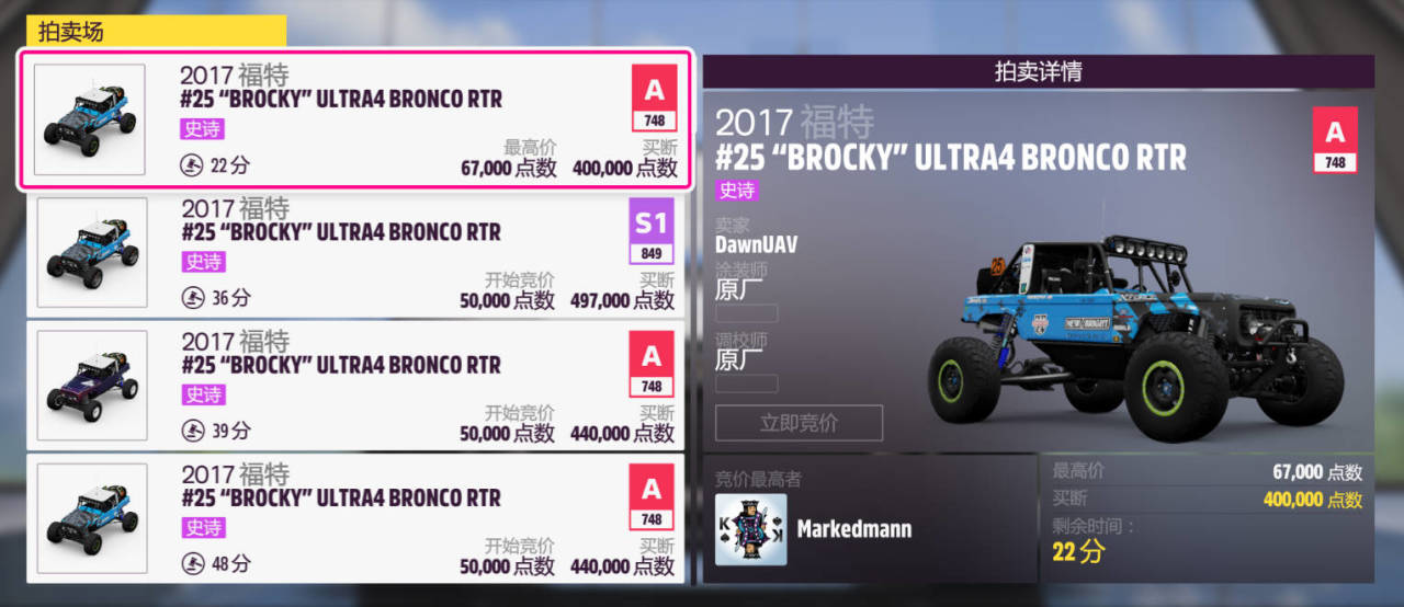 奖励车辆为:2017款福特 #25“BROCKY” ULTRA4 BRONCO RTR