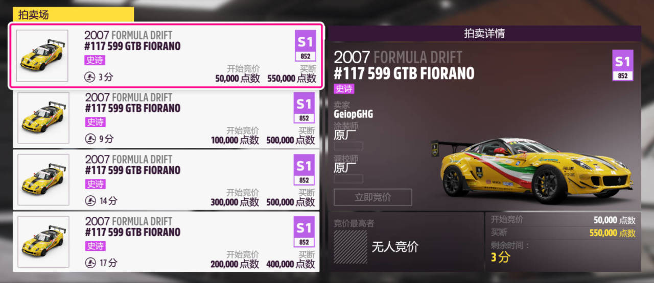 奖励车辆为:2007款FORMULA DRIFT #117 599 GTB FIOANO(好用的漂移车)