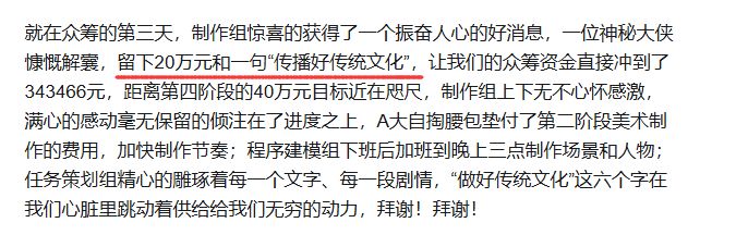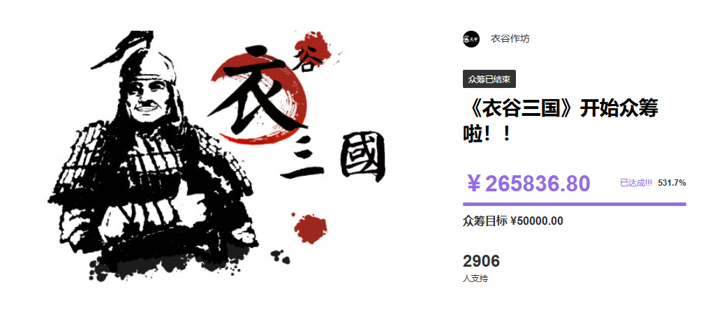 然而22年还在称不需要众筹的衣谷,却在24年改口称需要借助玩家之手才能达成目标进度,并于7月29日开启了众筹,最终衣谷光是在爱发电上就收获了26W的众筹资金,再加上那位提供了20W赞助的神秘大哥以及上百名普通玩家的直接捐赠,衣谷这波至少有了50W的保底。