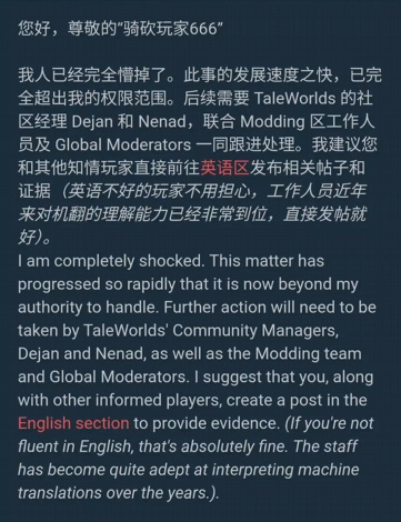 不过我觉得此次事件造成的最严重的影响还是MOD作者与玩家之间的信任危机,毕竟这个头已经开了,况且这还是个极其不好的头,未来国内骑砍圈的MOD生态会发展成什么样,也许只能静待一段时间才能知道吧。