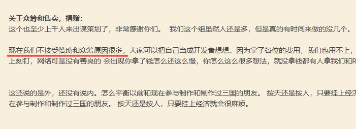首先要知道的一点是,衣谷团队自己也说了自己是个业余的团队,项目是2020年3月28日开始立项的,期间也遇到了各种各样的困难,当时很多玩家表示愿意通过众筹或赞助等方式来帮助团队加快进度,但是都被A大婉拒了。