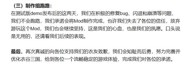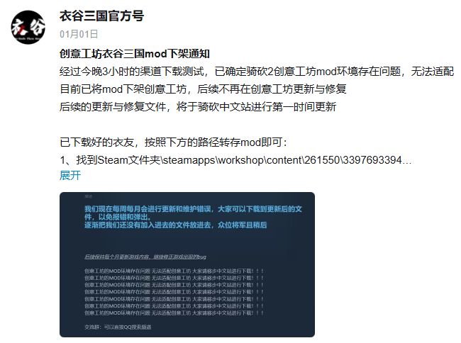 在折腾了数小时无果后,官方当晚就将该MOD下架了steam创意工坊,并表示不会再有后续的更新和修复,所有的后续内容都只会在中文站上更新。