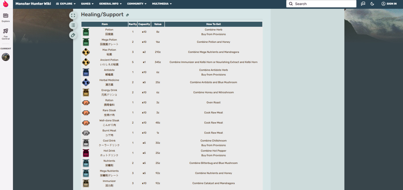 MHWI: Item List | Monster Hunter Wiki | Fandom