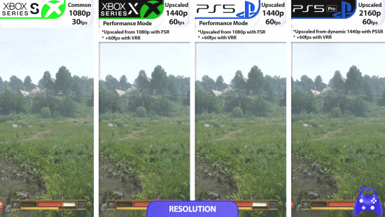 博主ElAnalistaDeBits发布《天国:拯救2》主机各平台画面对比,通过PSSR技术,PS5 Pro能获得几款主机中最好的画面规格。