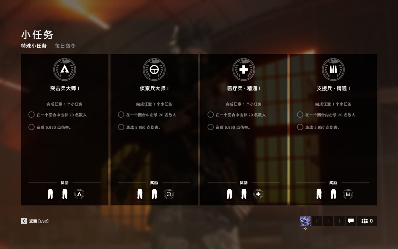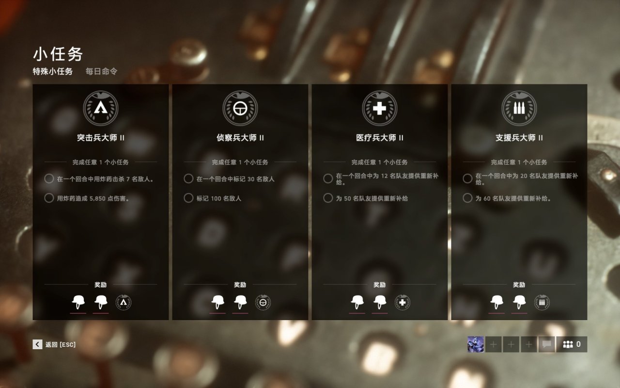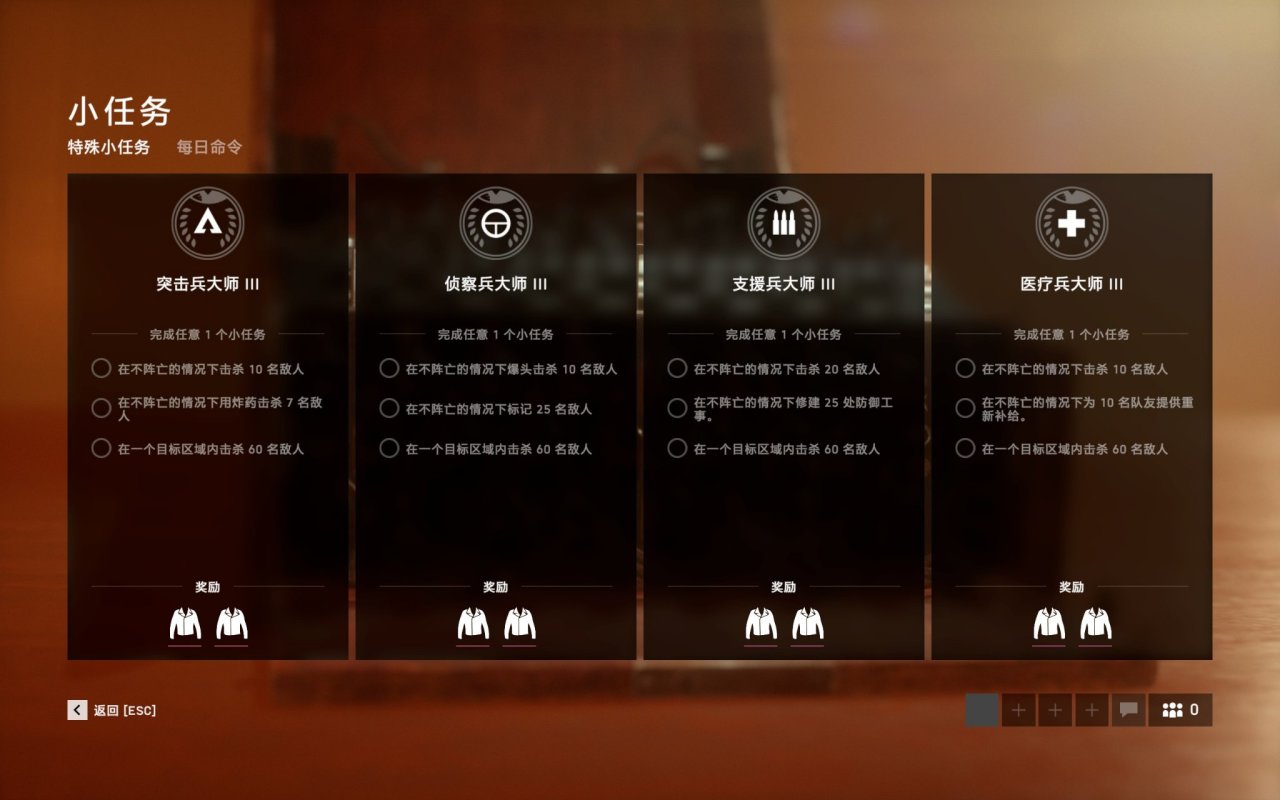 主题可以填There are no tasks for support soldiers, commandos, medics and scouts.They are all level20.