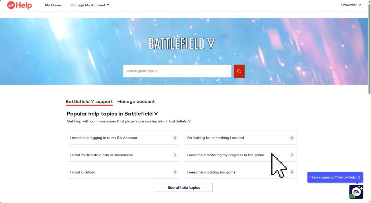 然后会跳转到该网页,点击右上EAhelp