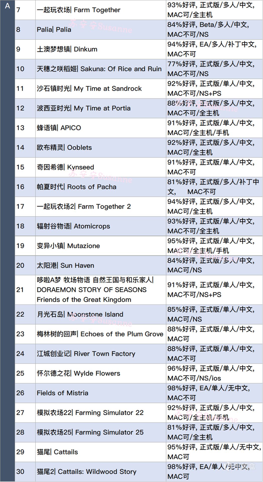 均为Steam游戏、若支持主机/手机额外标注🌾