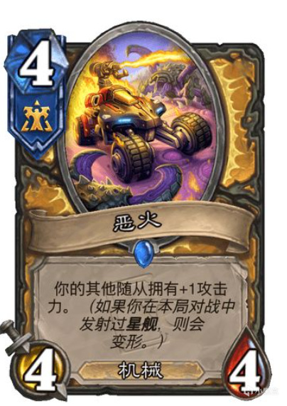 你的其他随从拥有+1攻击力。(如果你在本局对战中发射过星舰,则会变形)