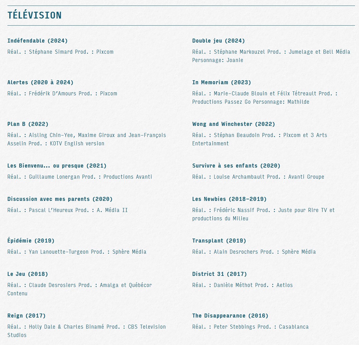 Catherine Berube,演员,在进入电视界之前曾参与几部戏剧的制作。