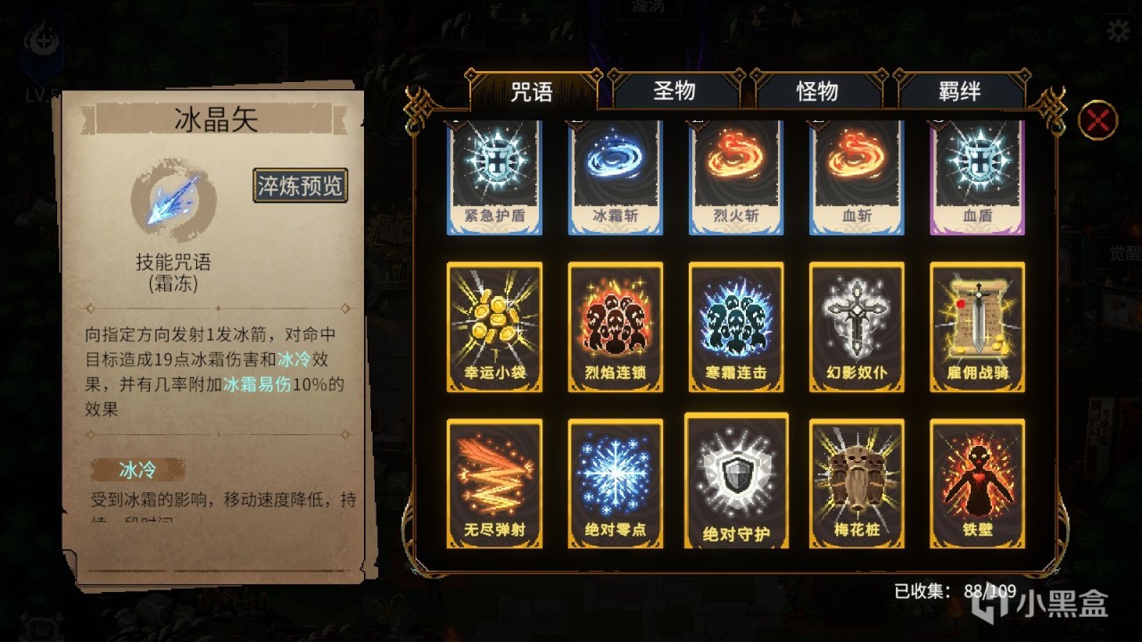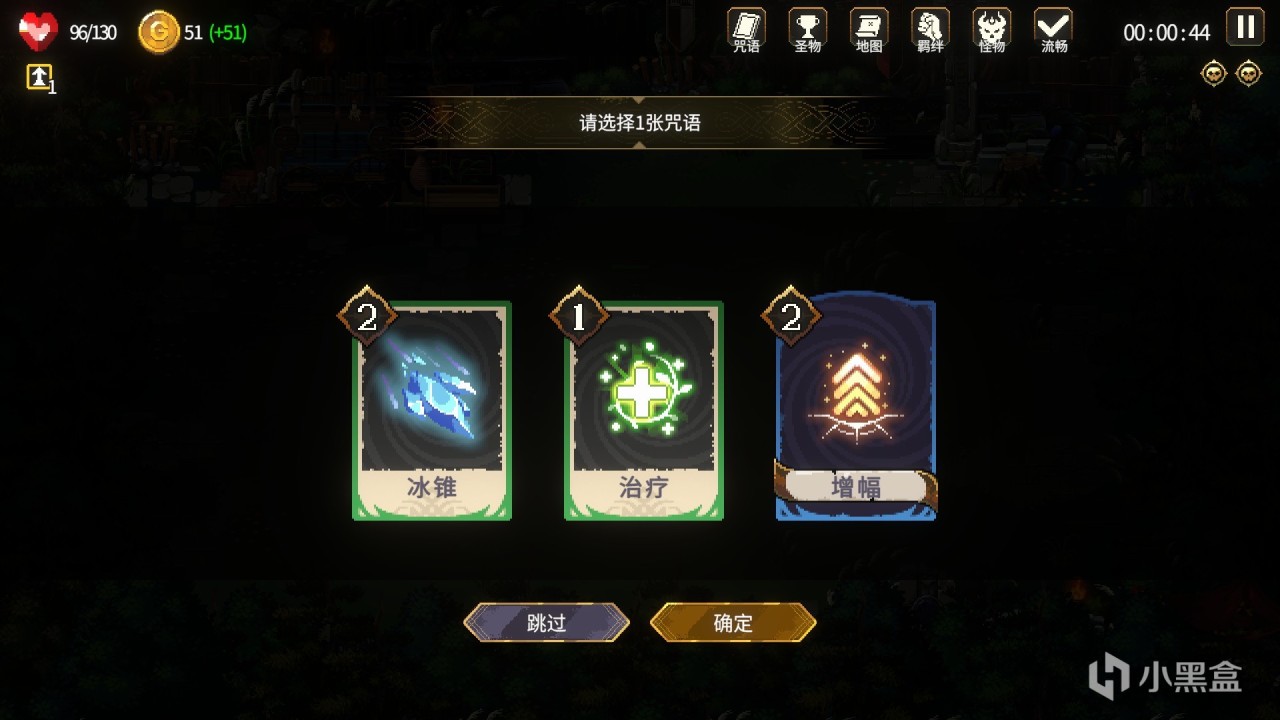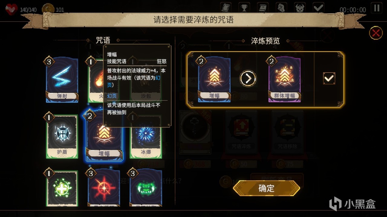 与许多爬塔游戏类比,玩家可以对手中的咒语进行淬炼,从而获得更加强大的咒语,例如把“治疗”淬炼成“急救”之后,不仅恢复的生命值增加,还能额外附加护盾效果。但也要注意的是,有些淬炼会让咒语发生巨大的变化,例如当“护盾”淬炼成“紧急护盾”之后,必须要周围有敌人的时候,才能获取大量的强化护盾,使用方式和使用效果都产生了变化。咒语的淬炼进一步增加了咒语的多样化,让玩家的战术策略也变得更加丰富。