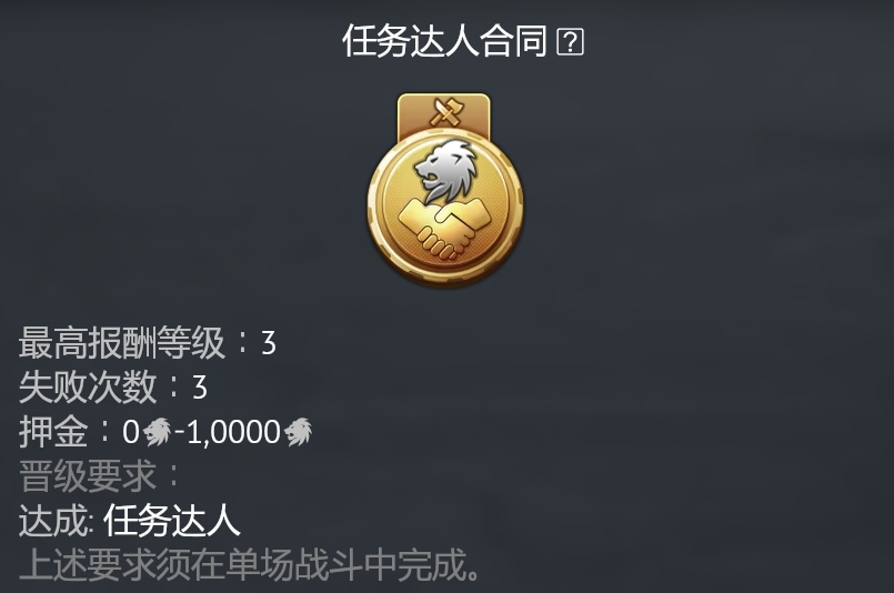 3、难点:这项合同之所以被我列为全游戏最难的银狮合同,正是因为它需要你同时完成“先拔头筹”与“最后一击”这两项成就,后者甚至要求你去与全场玩家竞争,不确定性太大。