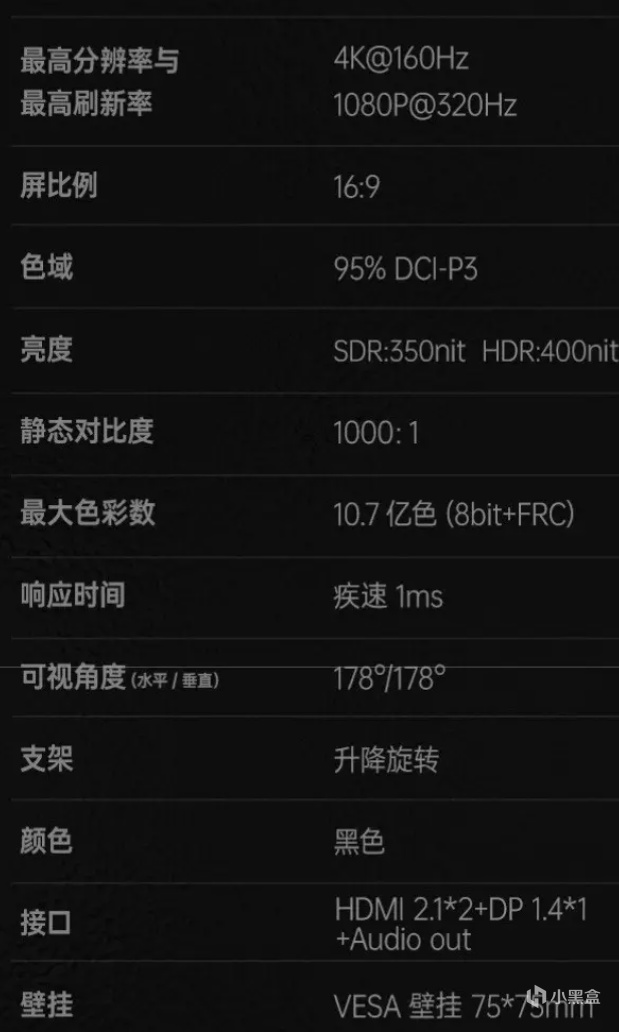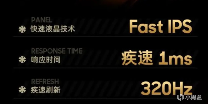 采用Fast IPS面板技术,提供1ms极速响应时间和最高320Hz的刷新率