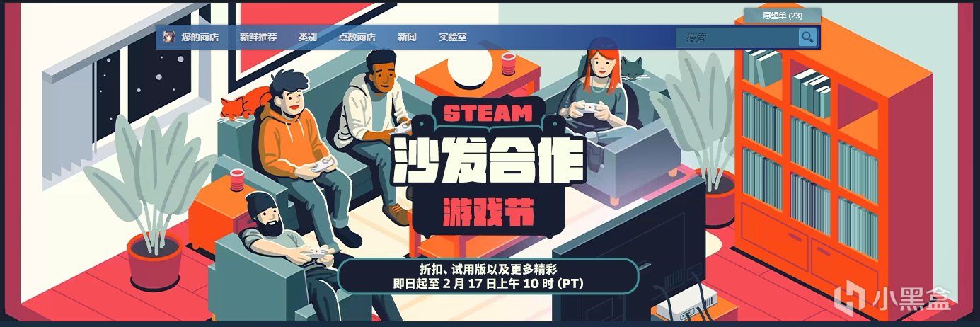 进入Steam商店,点击顶部的沙发合作游戏节活动横幅。
