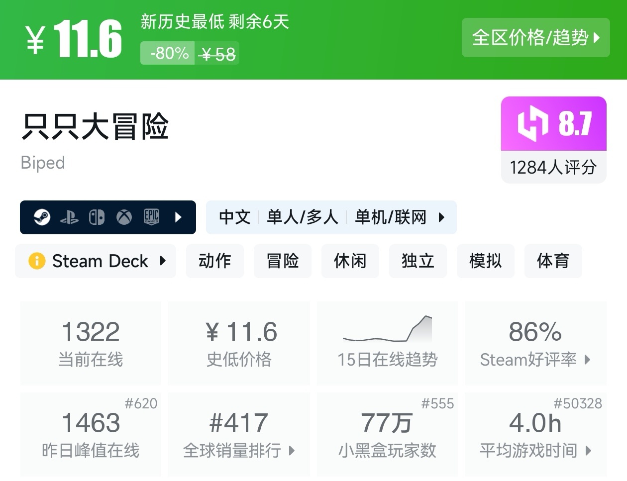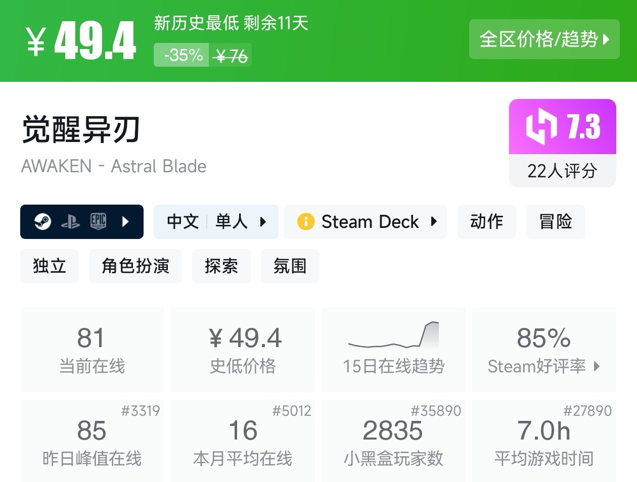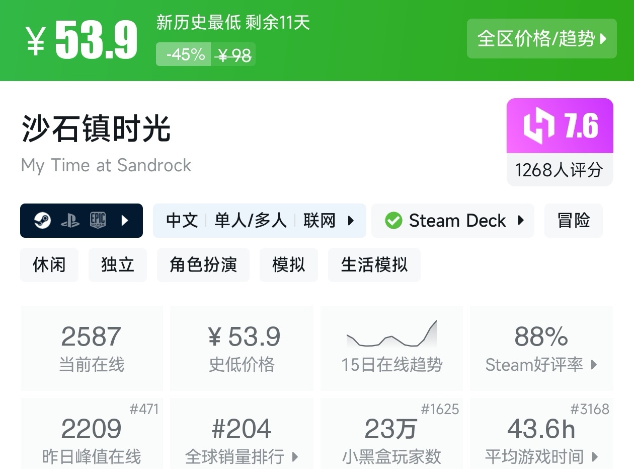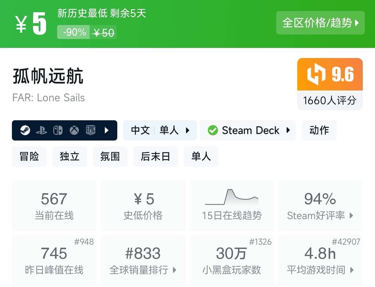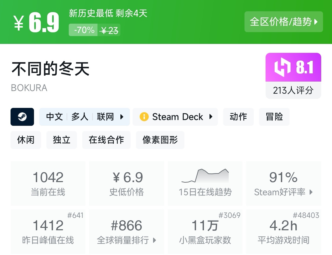 大家好,没错,又是我,你们的老朋友亦然,最近Steam有很多游戏都迎来了折扣,其中包括不少新史低的游戏,其实新史低的游戏买起来最有安全感,至少在后面很长一段时间都不会更低了,老规矩,我将为各位盒友进行一个汇总,希望我的汇总,能够帮助各位盒友挑选心仪的游戏。