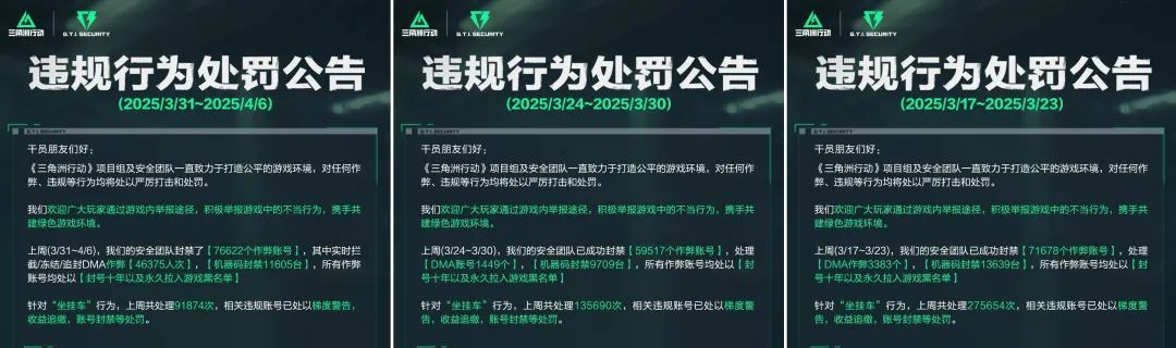 (每周《三角洲行动》都对违规作弊账号进行公示曝光)