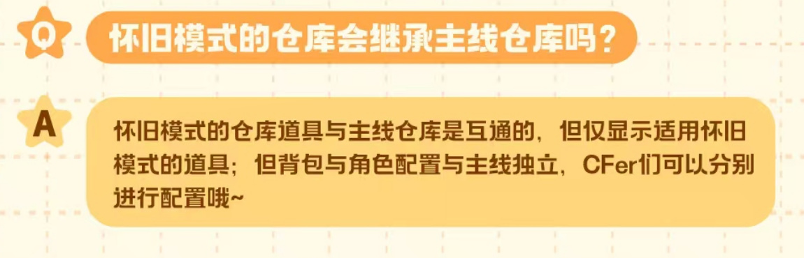 3、怀旧模式核心数据互通,仓库为继承正式版仓库,但仅保留怀旧模式的道具(2012年之前上线)