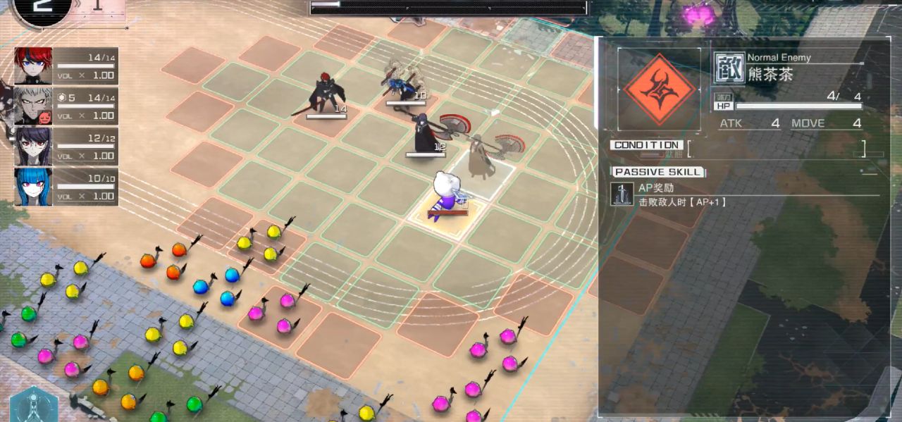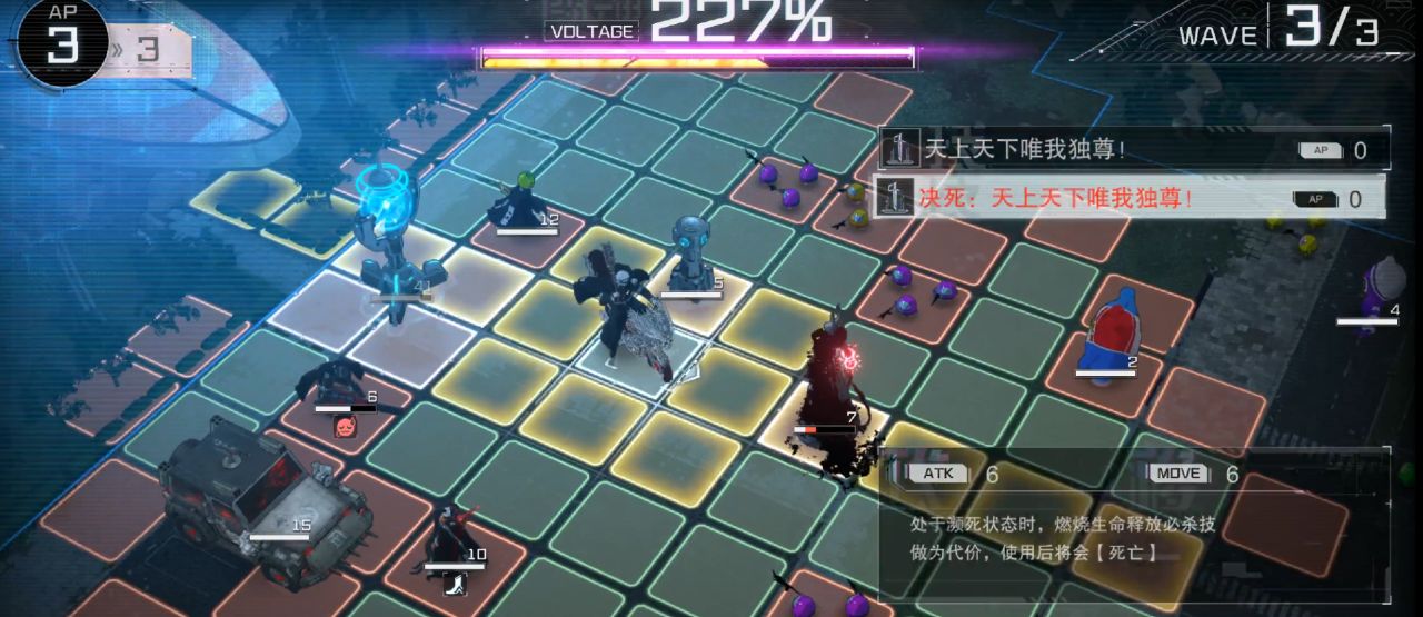 游戏中所有的行动依托于AP点,每次行动需要耗费1点AP点,AP点消耗完则可以选择行动结束
