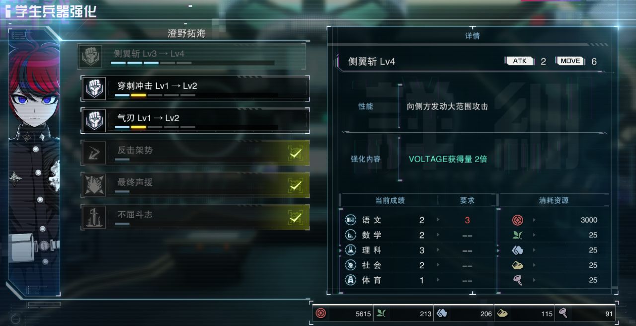 转换到人物的提升上,就是用材料升级技能等级,或是解锁新的道具,当然,这一部分有一定的属性限制