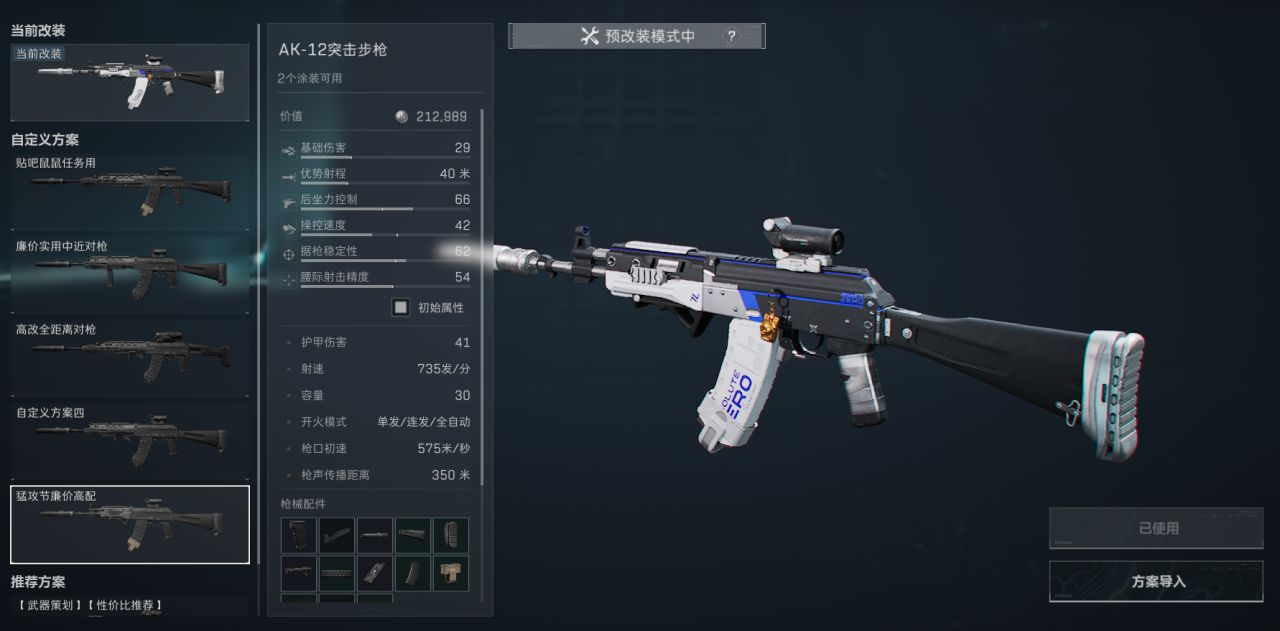 ak12在连续两次加强后已经可以说是稳居t1枪械了,虽然作为小口径枪械他的强度在众多t1枪械中不算出众。但比他强的枪性价比没他高,比他性价比高的枪没他强,鼠鼠从ak12上次加强开始就非常喜欢用这把枪。借着猛攻节时期ak12枪械配件子弹全都大降价来给大家分享一下使用心得。首先来讲一下为什么说ak12的性价比最高呢?因为他的四级弹价格超低,在平时只有1000一发而在猛攻节期间制式套大量产出后仅售700多一发!枪身在猛攻节之前大约十万一把但现在只要5-6万一把!不止如此!他作为ak俄系武器可以装配性价比超高的pbs俄式消音器用及其低廉的价格获取超高的属性。