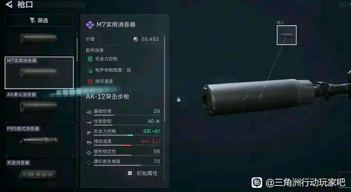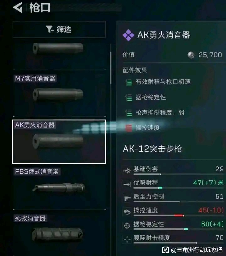 参考pbs消音器但多减了据枪提升了操控速度。根据需求可以选择他和pbs消音器,而且一些枪械例如勇士不能装pbs只能装这个枪口。