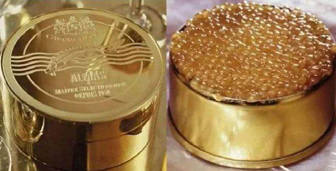 原型为伊朗出口的Almas鱼子酱,Almas波斯语的意思就是钻石。就图里那么一小点的包装都要黄金制作价格不菲。