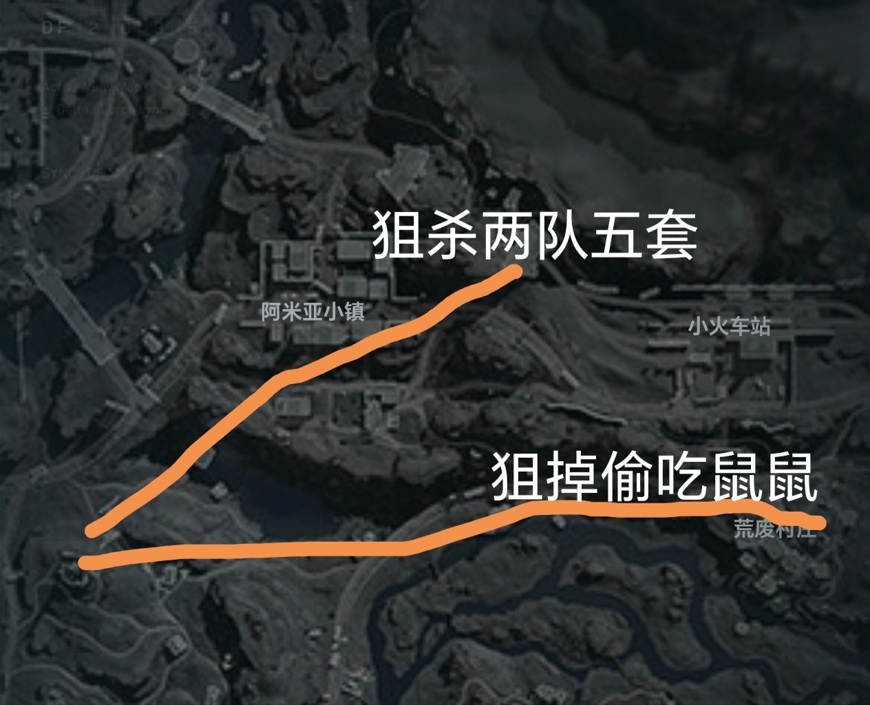 第一套是账面价值五十万(前后握把可以军需处换假账)的远程狙击特化高配版。这套改装高达1100多的弹速和高达240的优势射程可以搭配灵眼瞄准镜计算下坠来超远距离狙击爆头,鼠鼠曾经就在图二位置达成超远击杀。可惜没有来得及截图,自己跑过去爽吃后就撤离了。