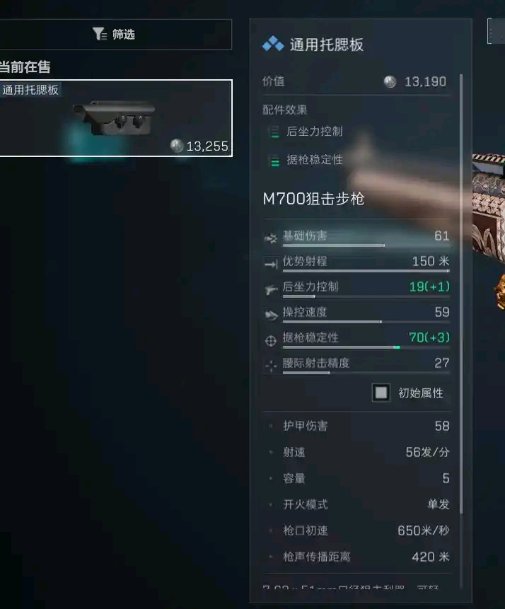 需要注意的是m700专属托腮板只有加装黑色一体枪托才可以安装,如果加装的是军规护木的话则只能加装通用托腮板。军规护木和通用托腮板的价格经常有浮动但m700黑色枪托和专属托腮板则因为老太掉落的缘故价格稳定基本不会涨价。