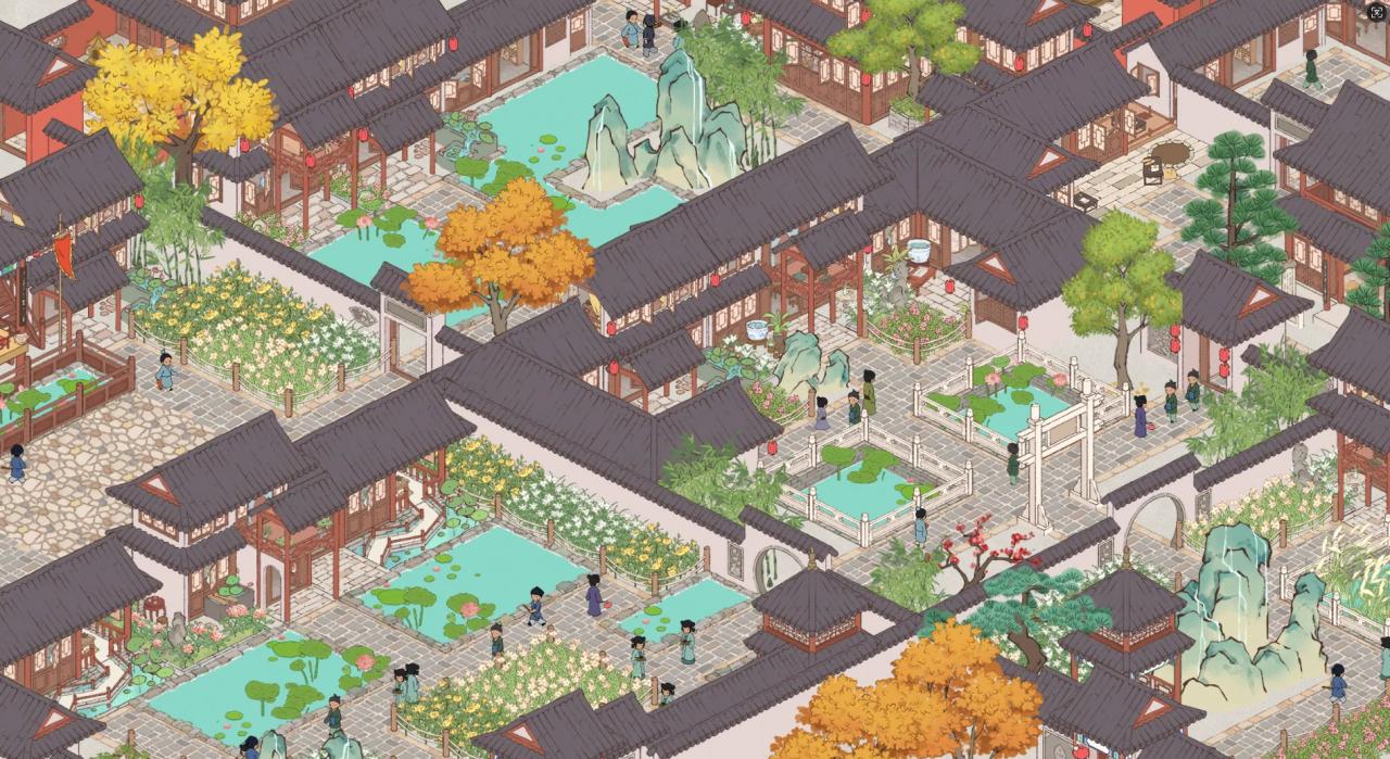 极具东方韵味的手绘国风画面勾勒出繁华盛世,同时有蓝图功能可分享/导入成型的庭院。