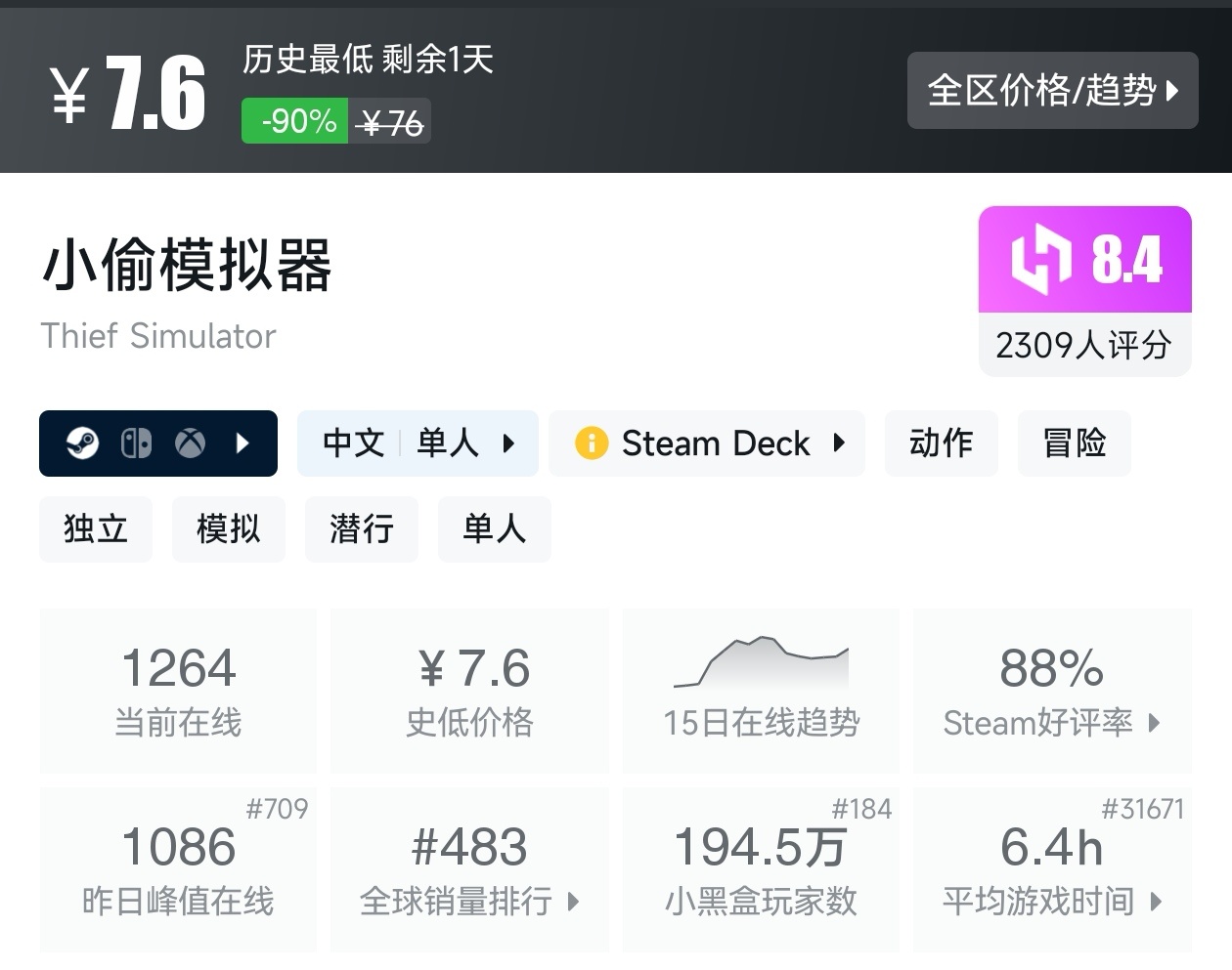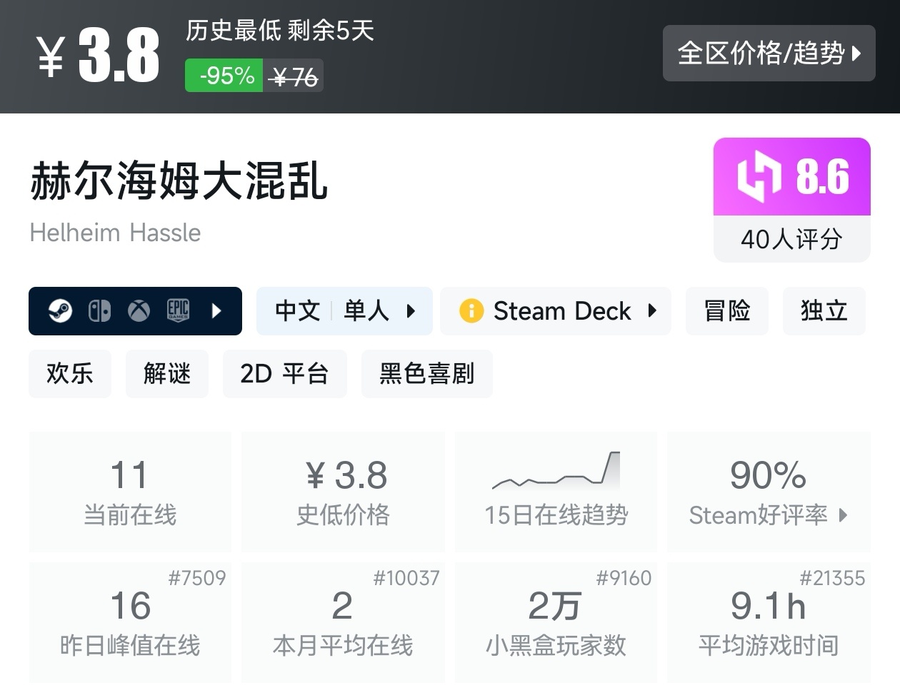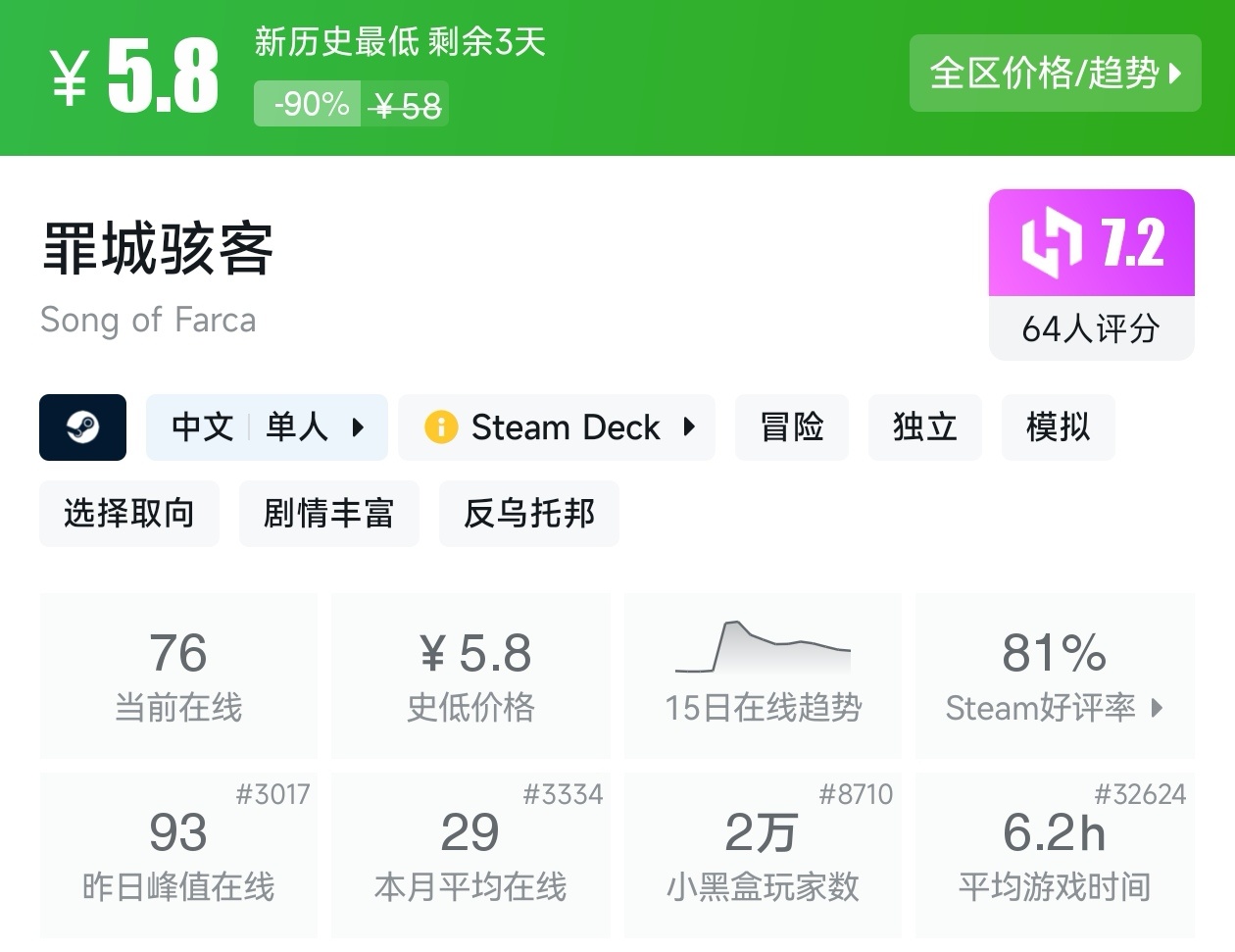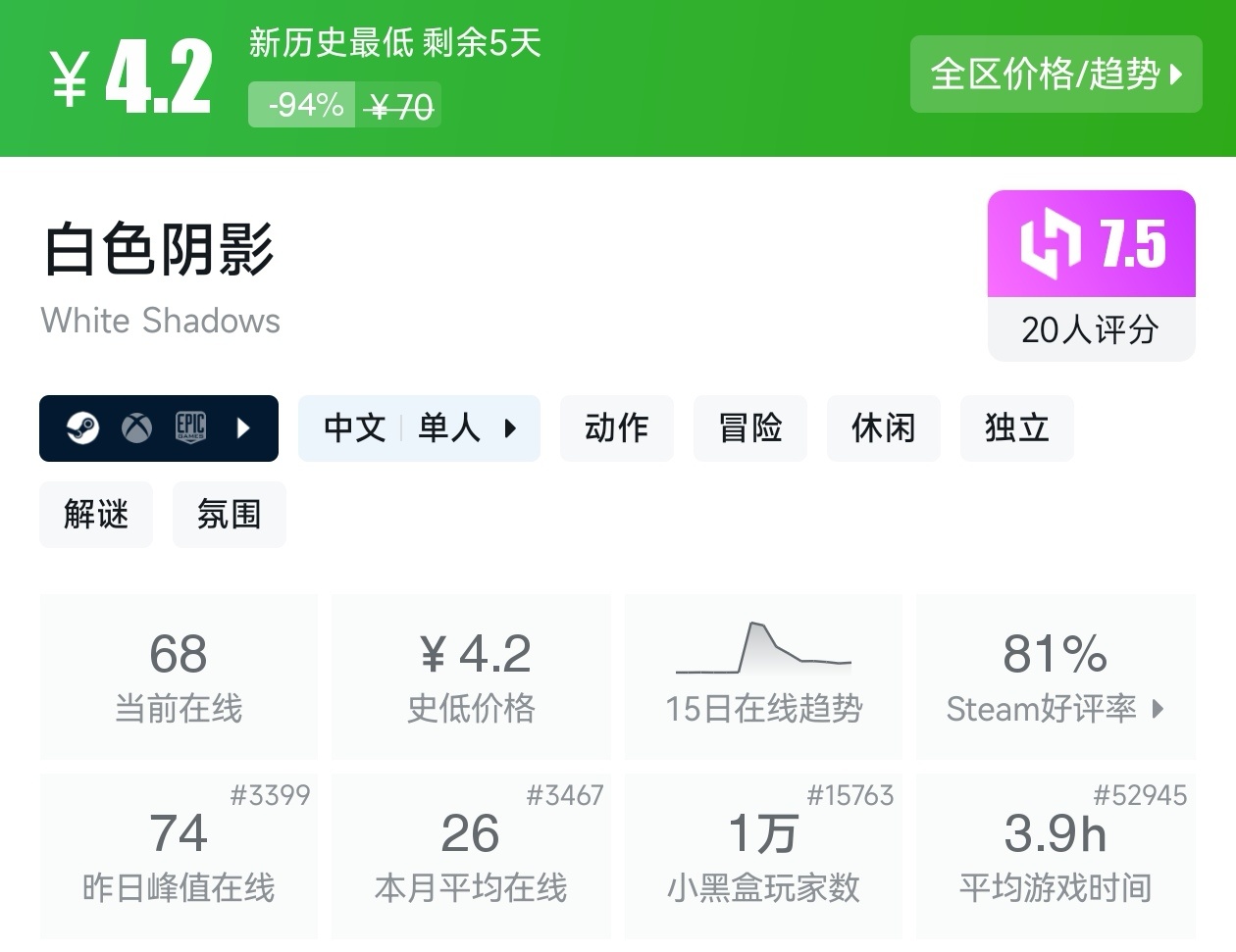 大家好,没错,又是我,你们的老朋友亦然,在最近,Steam有很多游戏都迎来了折扣,包括各种价格美丽,同时游戏质量很顶的游戏,这其中就有不少的1折游戏,我将为各位进行一个汇总,希望我的汇总,能够帮助各位盒友挑选心仪的游戏。