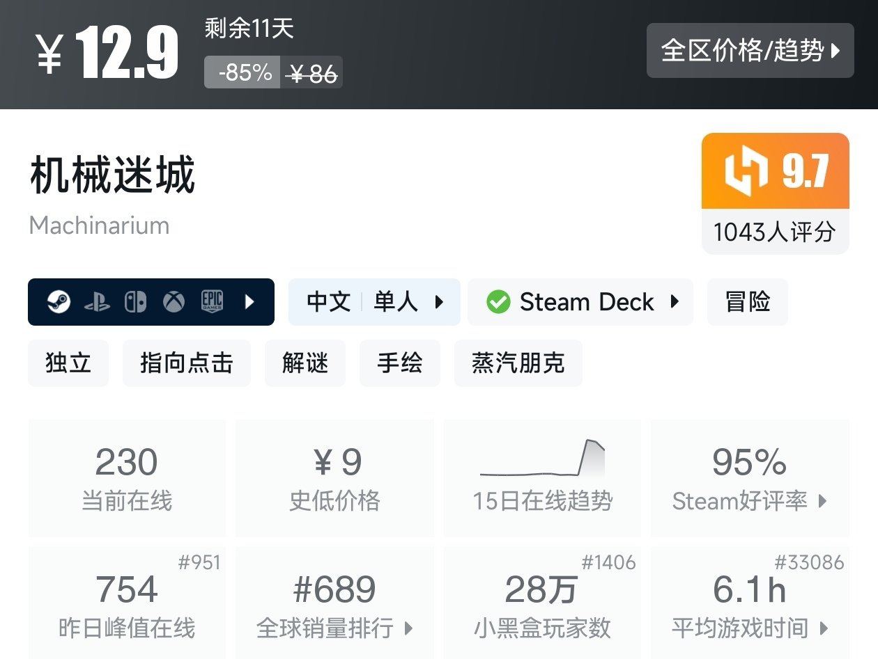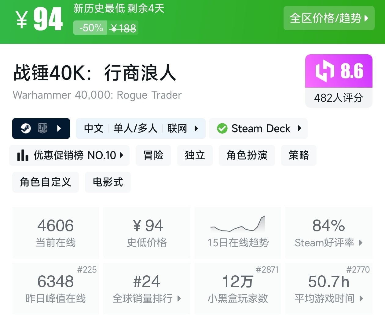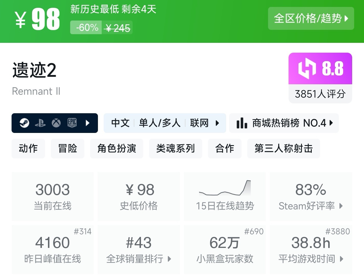 大家好,没错,又是我,你们的老朋友亦然,这周打折的游戏可以说阵容相当豪华了,有很多3A大作都参与了此次打折,可以说不是游戏节,胜似游戏节,那么有几款游戏的折扣只剩最后一天,老规矩,我将为各位进行一个汇总,希望我的汇总,能够帮助各位盒友挑选心仪的游戏。
