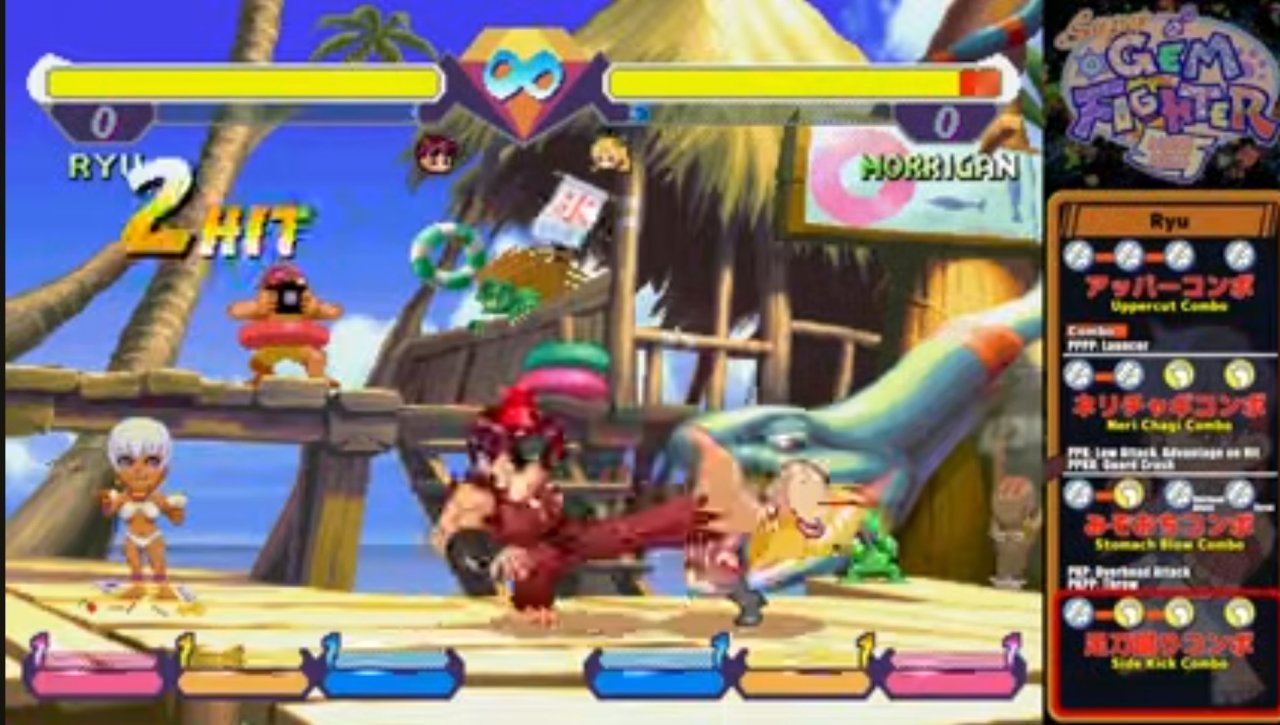 首先在超级口袋战士的海滩擂台中,我们可以在靠左边板边下面看到,艾琳娜和布兰卡在背后旁观着玩家的对决。