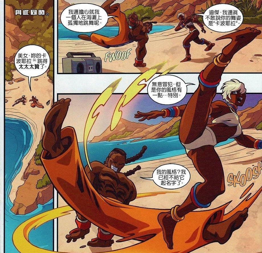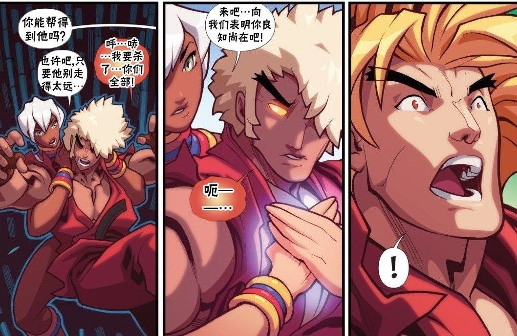 最后在漫画《拳愿阿修罗》外传中,艾琳娜也随着联动一同出现在漫画里,可惜除了隆以外,其他角色基本都是只有一个出场画面。