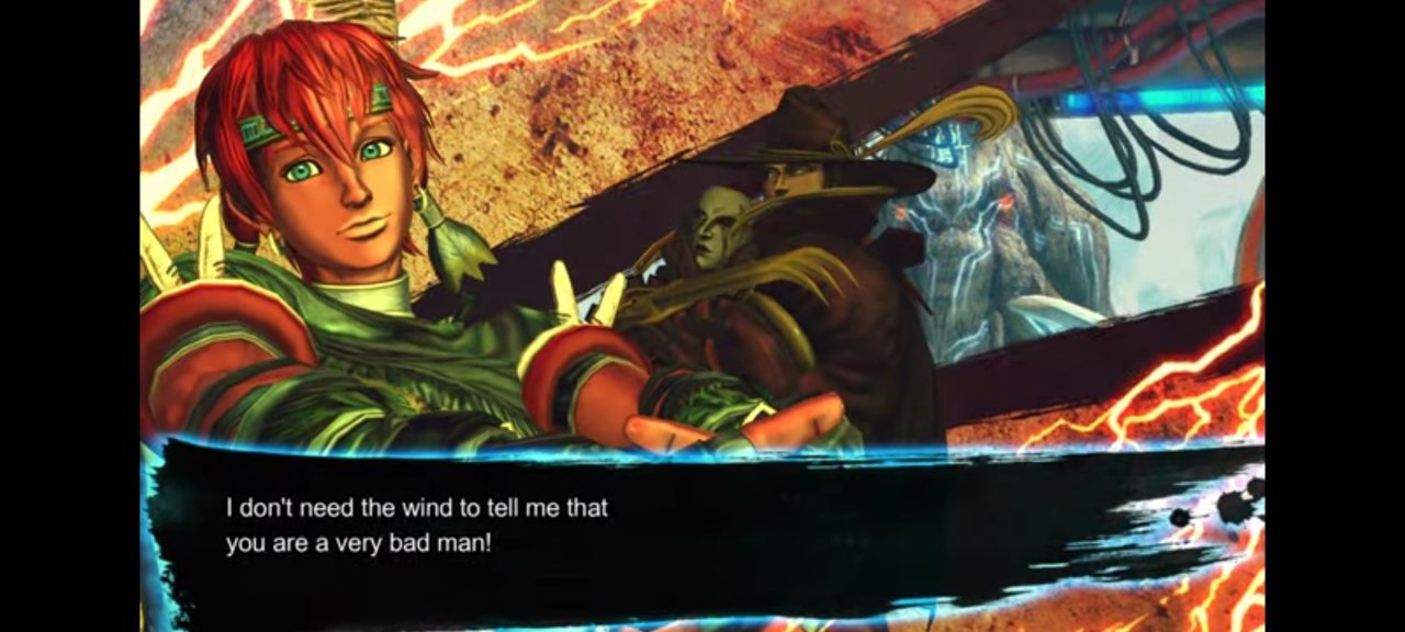 紧接着来到了终极街霸4时期,时间线应该是去日本之前:在与哥哥马库斯切磋时,艾琳娜敏锐地感知到,四周树木正传递着令人不安的情绪。她的父亲贾法里表示已经与部落的萨满讨论了此事,他们认为有一位死亡使者曾潜伏于他们的部落中,此人将“悲伤的种子”散播到世界各地,导致树木发出了“奇怪的声音”。