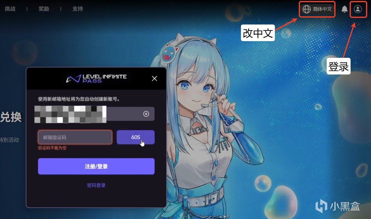 接着打开level infinite pass官网,右上角角色图标登录官网