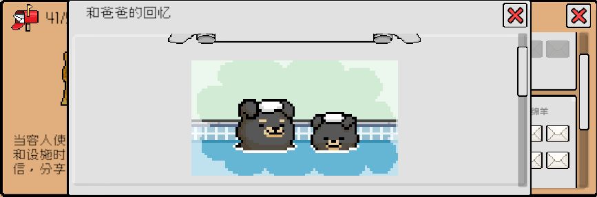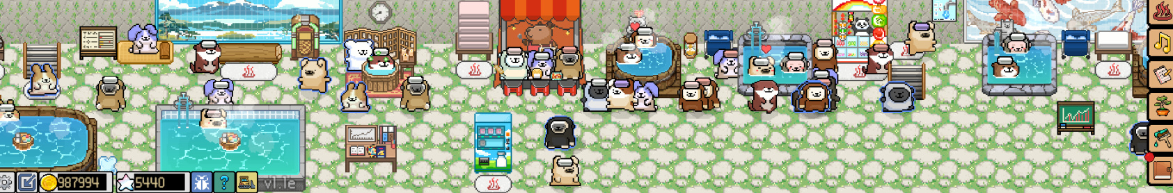 偶尔使用挂机赚取的星星购买各种运营设施,以安排员工的传单工作、调整收费、调整楼层房客比例、淋浴品贩售、运营状况观测、员工私人温泉、毛巾供应等辅助温泉经营的功能性设施。