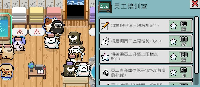 而后者呢?你只需招募各种小动物员工,将温泉、自动贩卖机、毛巾、小吃摊、淋浴房等澡堂常见设施摆放妥当即可。