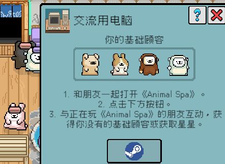 其中还有一个看似有些鸡肋但能与好友之间产生微妙互动的“交流用电脑”:只要你的Steam好友列表中有一位好友同时在线游戏,就可以与Ta进行互动,随机获得一个尚未解锁的图鉴新动物或星星。