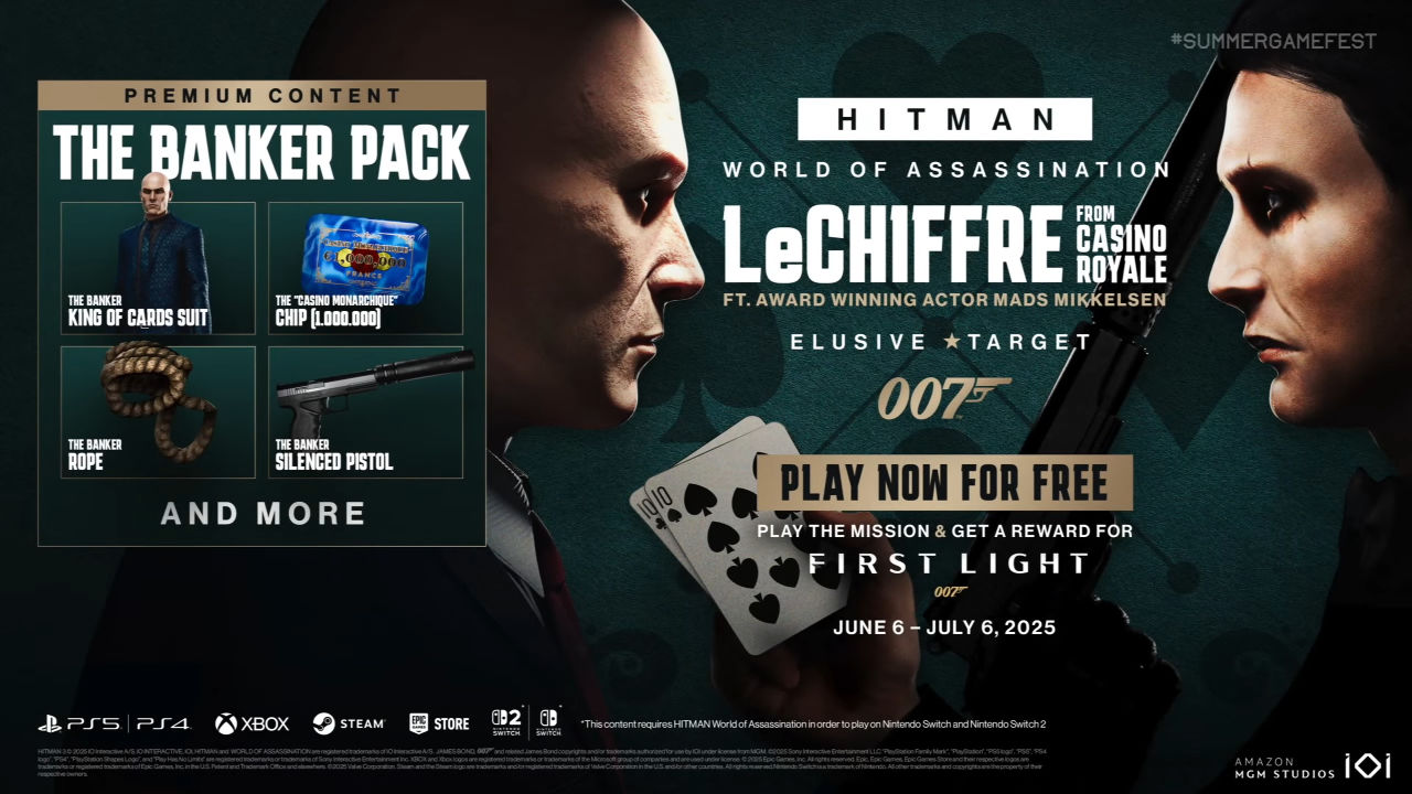 麦斯·米科尔森在《杀手:暗杀世界》与《007》新作游戏的联动中重现他在《皇家赌场》中的角色。
