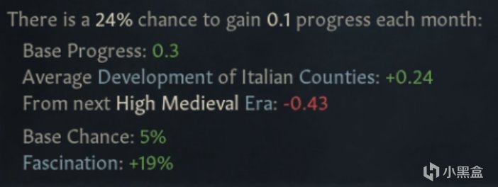 进度弹窗将每月增长进度的几率分解为各个影响因素,由此可以对某项革新研究速度是快是慢为何停滞做个诊断。