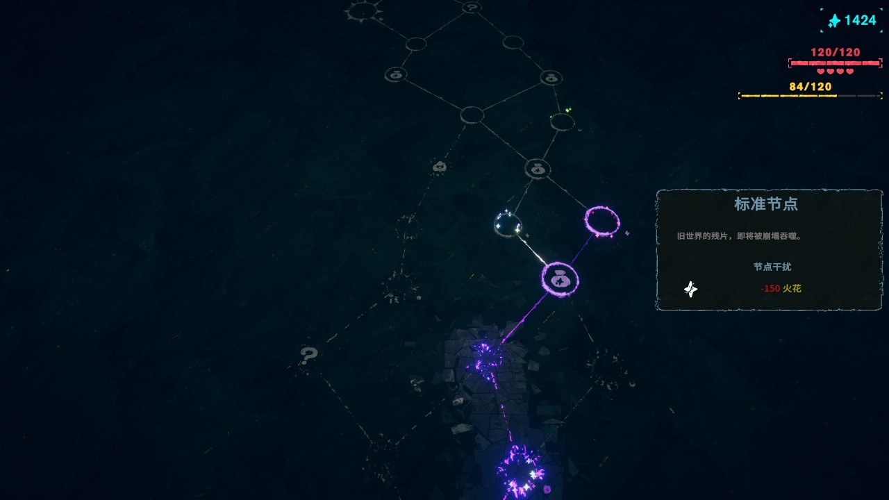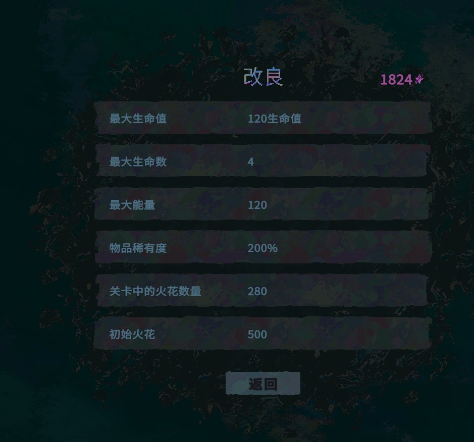 在前进的过程中,顺路拾取火花(相当路径指引)。这些火花可用于购买局内道具,强化各项能力。勉强、优秀、完美着陆,不同的落地评分会积蓄能量。