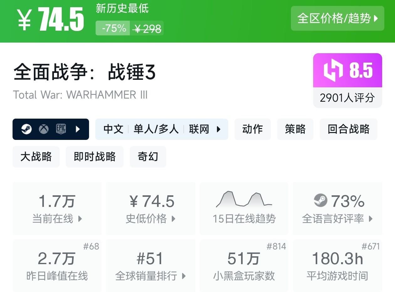 大家好,没错,又是我,你们的老朋友亦然,在今天,就是国庆第二天,秋促第三天了,不知道各位盒友买到了哪些游戏,这期帖子,应粉丝催更,说怎么不见你的新史低帖子,这不就来了嘛,其实新史低的游戏买起来最有安全感,因为很长一段时间都不会更低,我将为各位进行一个汇总,希望我的汇总,能够帮助各位各有挑选心仪的游戏。