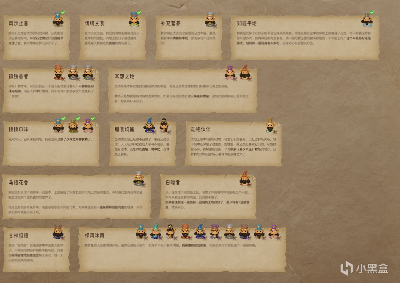 幸福度提高会增加居住人口,不用额外升级住房。有时候,他们也会提出各种请求,社恐想远离人群、想要住在工坊附近(叮叮声入眠)、要吃其他事物和养小鸟。请求都可以提,但我们可以不理。