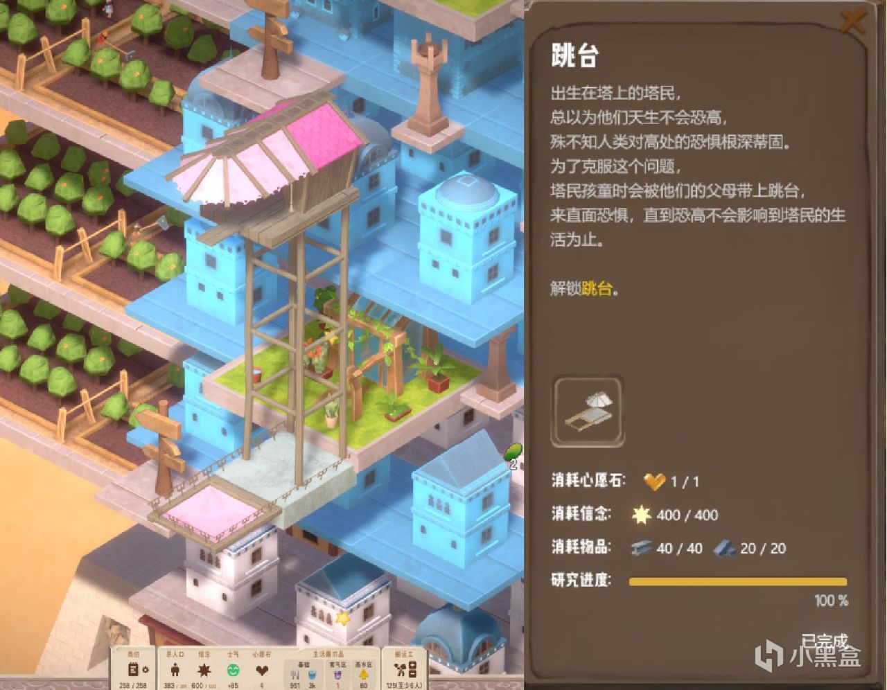 在解决温饱生存需求后,居民会有更高的幸福生活要求。分开工业区和居民区,避免工坊的宜居度惩罚。建造冥想室花房等娱乐休闲设施。为了克服恐高症,他们会要求建造跳台,高空生活从娃娃抓起。